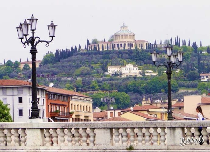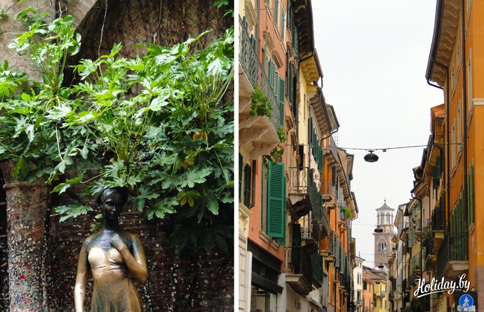 Наконец, пришло время посетить Италию. Сначала мы приехали в Верону. Как я уже говорила, в программе этого города не было, но по общему решению мы его «втиснули» в поездку. Город оказался весьма своеобразным и тихим (если не считать туристов). Сразу чувствуется особая атмосфера романтики и нежности: дает о себе знать общеизвестный факт, что здесь жили знаменитые влюбленные.