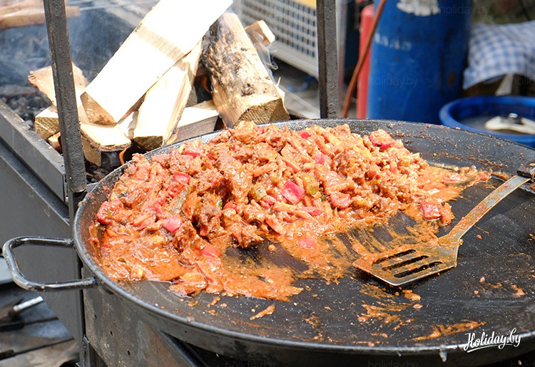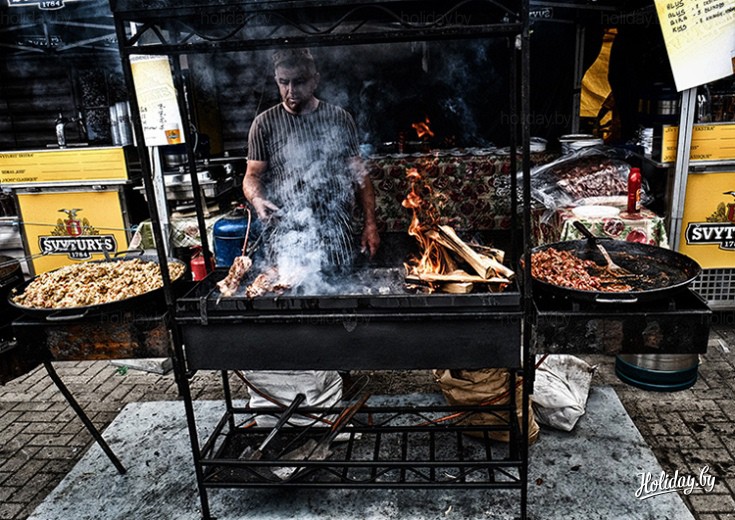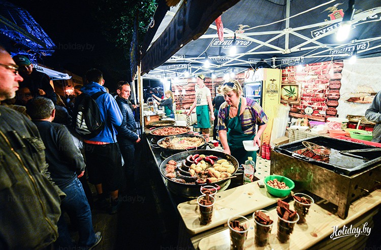 Пройти мимо лавок с блюдами национальной кухни было просто невозможно. Здесь предлагали отведать и плов с виноградом, и рульку, и традиционные литовские колбаски... А в местных ресторанчиках посетители могли попробовать традиционные местные настойки.