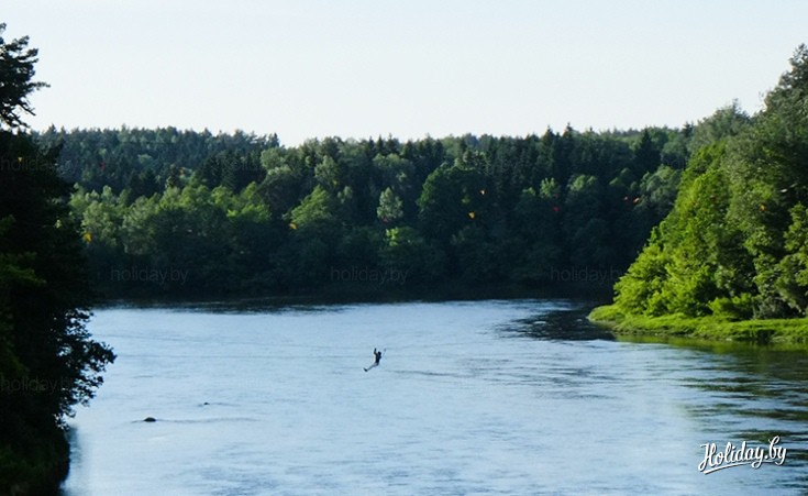 Любители экстремальных приключений могут прокатиться на тросе над рекой Нярис