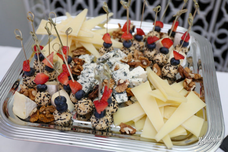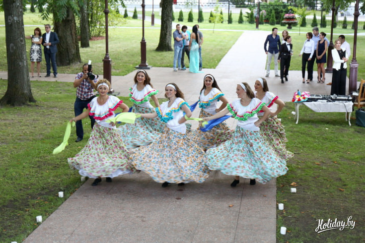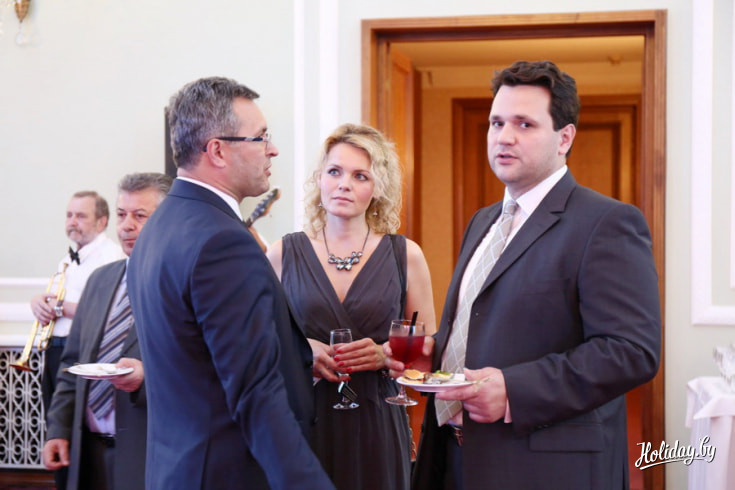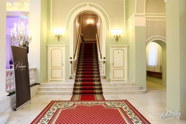 Расположение зала — самый центр Минска недалеко от площади Победы — не единственное и не главное его преимущество. Кроме большого Голубого зала в аренду предоставляются каминный зал на 16-20 человек и комната переговоров. Тут есть семь VIP-коттеджей для ночлега гостей. Большая зеленая территория. Здесь можно и фотосессию провести, и выездную регистрацию свадьбы устроить, и фуршет, и концерт…