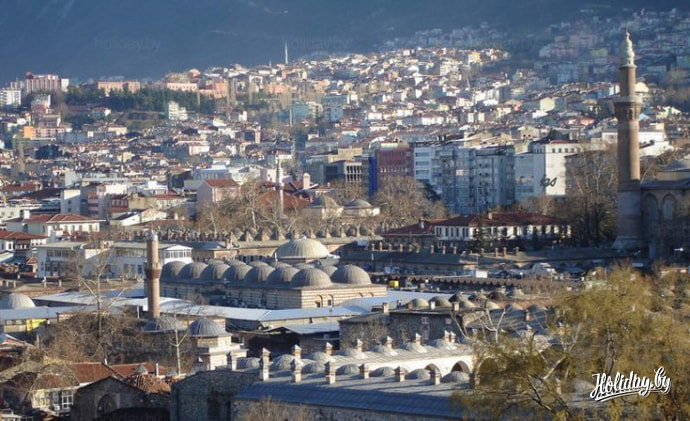 4. Город Бурсу именуют турецким изумрудом. Он утопает в зелени и хранит бесчисленное количество памятников архитектуры. А рядом— гора Улудаг с термальными источниками и персиковыми садами.