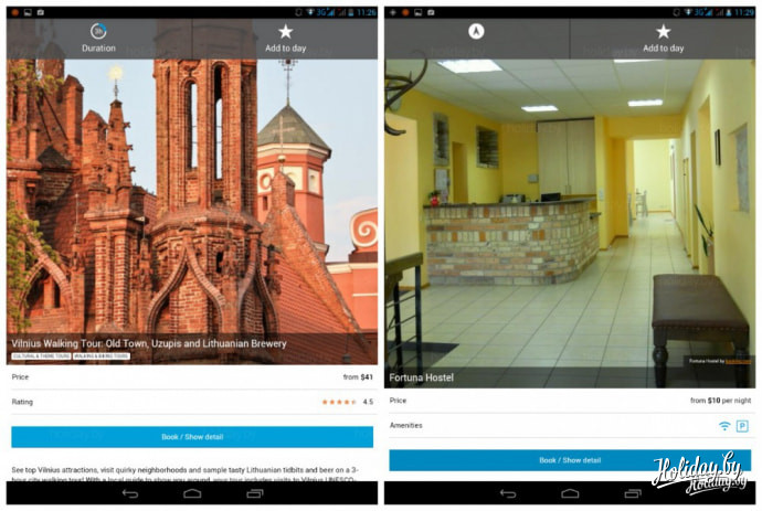 Приложение на английском языке с внушительным списком хостелов, отелей с ценами и контактами, а также перечнем платных экскурсий. В приложении удобно просматривать фотографии хостелов, есть возможность отсортировать жилье по стоимости и «звездности». Жилье нашли, а вот с развлечениями у приложения беда. Этот раздел почему-то пуст.