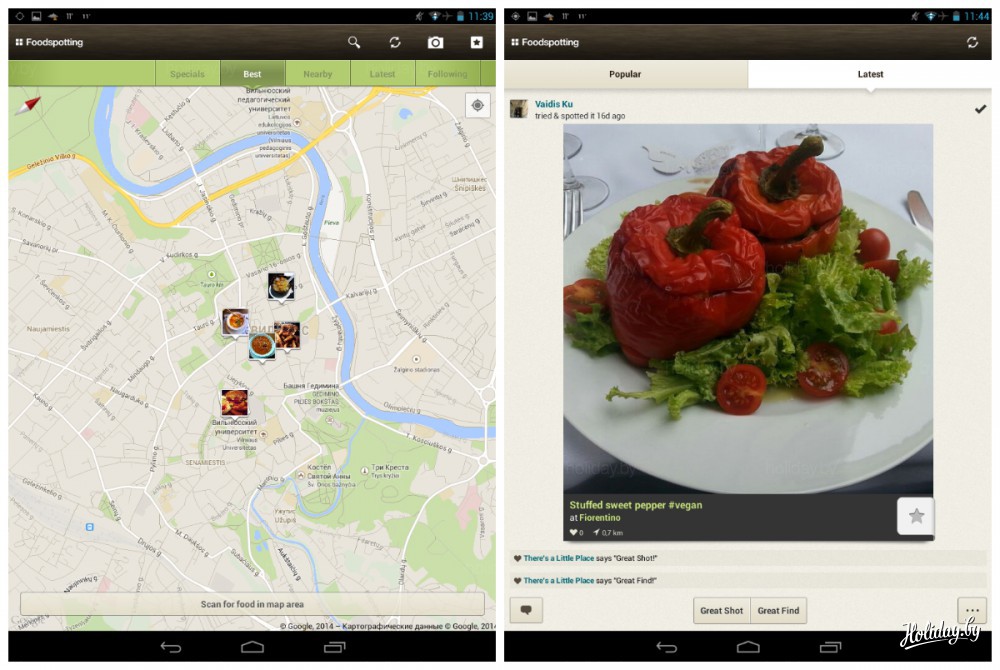 Необычное приложение на английском с фотографиями еды, для гурманов. Загружаем, выбираем Литву-Вильнюс и перед нами открывается карта, к которой привязаны снимки разных блюд. Чтобы понять, как работает FoodSpotting, придется поломать голову.