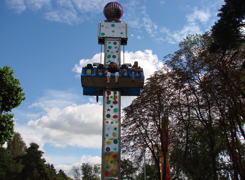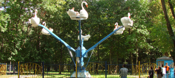«Лебеди», 2200 рублей. Аналогичные «Лебеди» в парке Горького мне понравились намного больше. Здесь, когда нажимаете кнопку поднятия вверх, они не плавно поднимаются, а просто рвут с места, при этом сотрясая всю карусель. Честно говоря, при каждом нажатии на кнопку охватывает неприятное ощущение, что ваш лебедь сейчас рухнет вниз.
