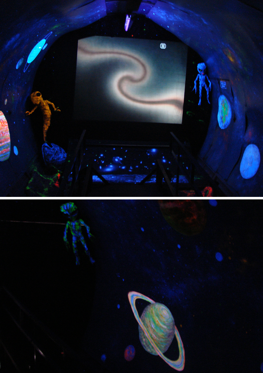 Взрослым этот аттракцион покажется скучным, но дети иногда даже пугаются вибрации пола и возникающих ниоткуда инопланетян.