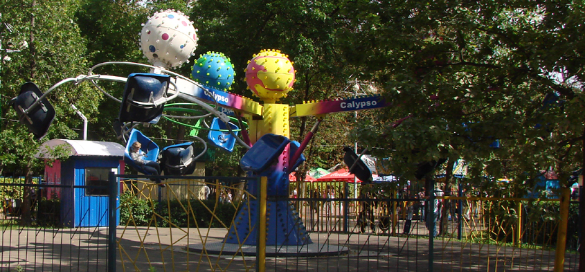 По аналогичному принципу движется и этот аттракцион – «Калипсо», 3000 рублей. Он движется немного медленнее, поэтому главными его посетителями являются дети от 7 лет.