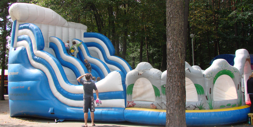 А это экстрим для самых маленьких – «Волна», 4000 рублей. Я не рискнула отправить туда своего ребенка, т.к. была свидетелем травм нескольких детей. Слишком крутой склон у этой горки. Падая вниз, дети частенько ударяются друг о друга. Горка не опасна, если по ней аккуратно съезжать по одному человеку. Но когда там бесится толпа взрослых детей, то и дело прыгая (а не съезжая) сверху вниз, маленьким там делать нечего.
