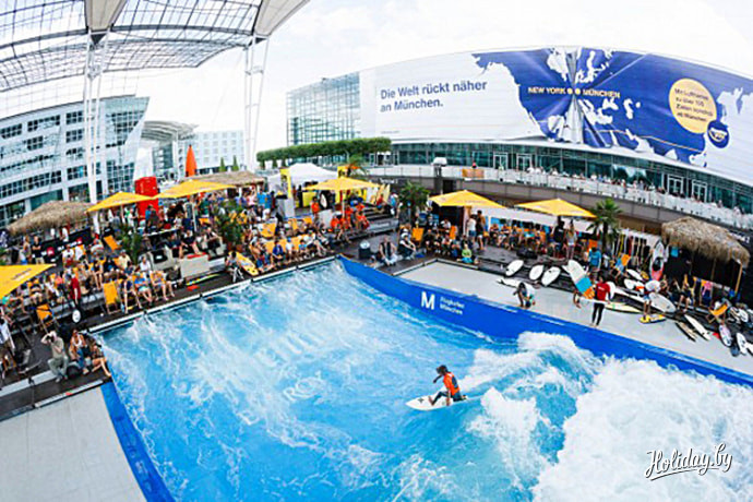 Мюнхенский аэропорт второй по величине в Германии. Пассажиров здесь очень много. Некоторые из них подолгу ждут пересадок. Зачем тратить время на долгое мучительное ожидание? Лучше использовать его с пользой и удовольствием. Теперь в аэропорту можно бесплатно заняться серфингом в бассейне с искусственными волнами.