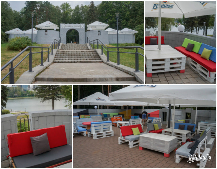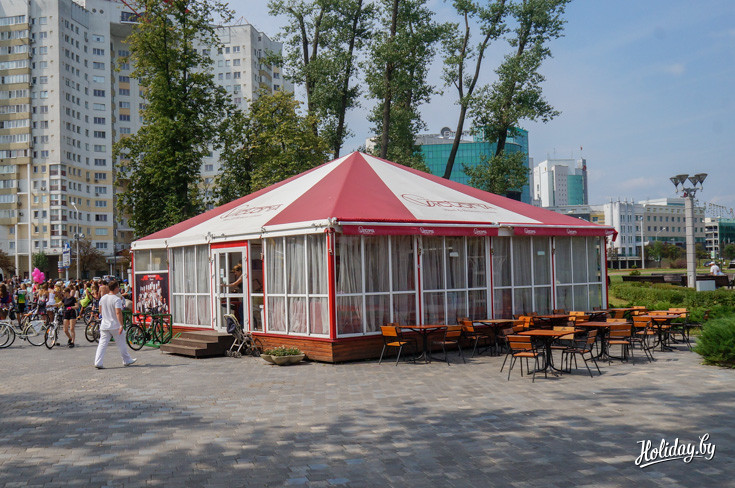На территории всего парка установлено около 10 летних кафе с большими террасами.