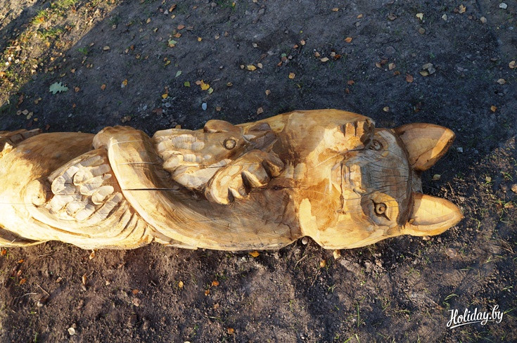 По дороге к новому водоему можно будет сфотографироваться с лисой, пожать лапу мышке и обнять медведя. В июне в деревне ремесел две недели проходил пленер, на котором девять ремесленников стругали из дерева скульптуры. Результаты их работы установлены вдоль аллеи.