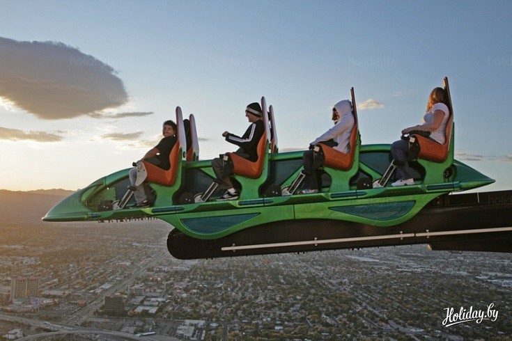 Самый любимый туристами ужасающий аттракцион называется X Scream. Высота башни отеля — 274 метра над землей. Здесь, на краю крыши, и располагается зеленый вагончик, который разгоняется и выходит за пределы рельсов на 8 метров от края башни. Страшнее всего находиться на первом сидении. Любите высоту? Значит, вам сюда.
