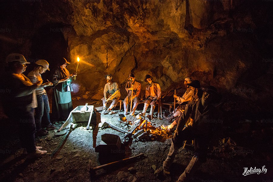 «А сейчас я покажу вам тех, кто добывал здесь руду!» — говорит Катарина, выводя нас гулкими тоннелями к месту, где около костра сидят куклы шахтеров. «Вот так выглядели те, кто работал в шахтах». У фигур натруженные руки и уставшие лица людей, которые тяжело трудятся и почти не видят солнечного света. Если бы не предупреждение гида, можно было бы не на шутку испугаться, настолько реалистичны фигуры в человеческий рост в тусклом подземелье.