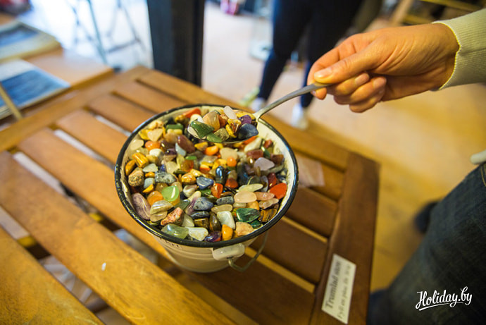 На преодоление нависающего над скалами мостика уходит почти час. Уставшие, но страшно довольные мы прощаемся с радушной Катариной, которая приносит нам воды и просит приезжать еще, и решаем напоследок посетить местный магазин. Здесь продаются сувениры, напоминающие о посещение серебряных шахт Швеции, разноцветные камни, ограненные и нет.
