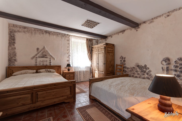 Вы когда-нибудь жили в настоящем музее? В этой агроусадьбе вам представится такая возможность! В комфортабельном доме, выполненном в стиле «кантри», есть целая экспозиция предметов старины, которыми пользовались белорусы в быту. Кроме того, здесь вы можете всего за одну ночь даже поправить здоровье. Экодом из натурального дерева и бутова камня создает естественную вентиляцию, поэтому утром гости просыпаются бодрые и отдохнувшие.