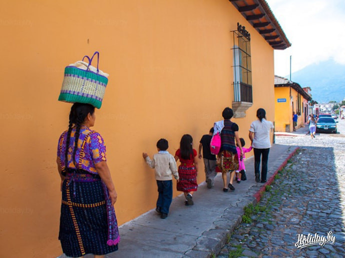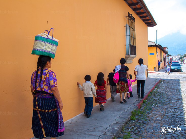 Город Антигуа в Гватемале. Даже в наши дни местные жители — индейцы майя — носят национальные костюмы
