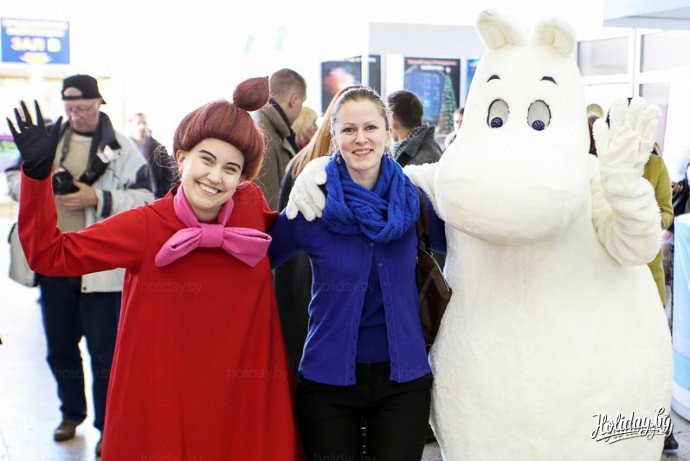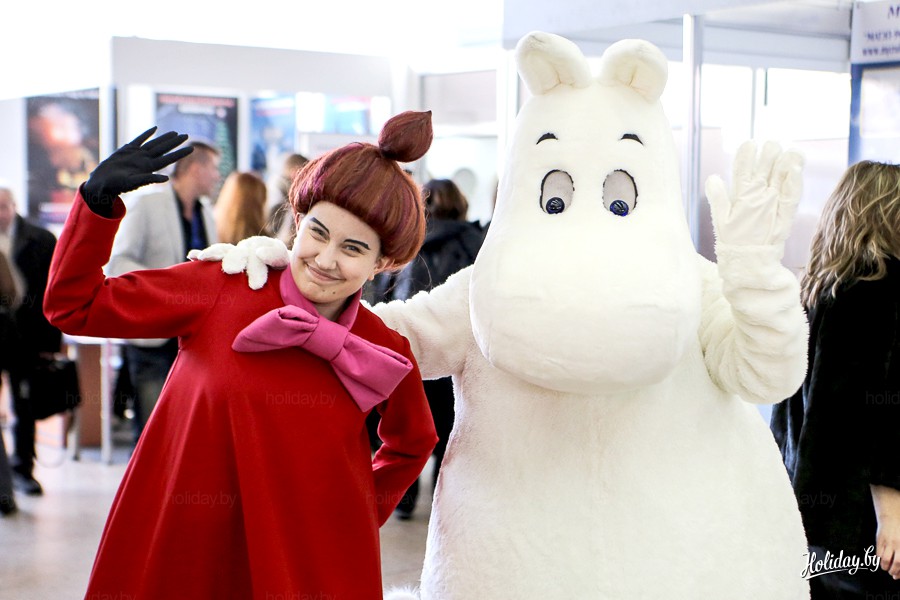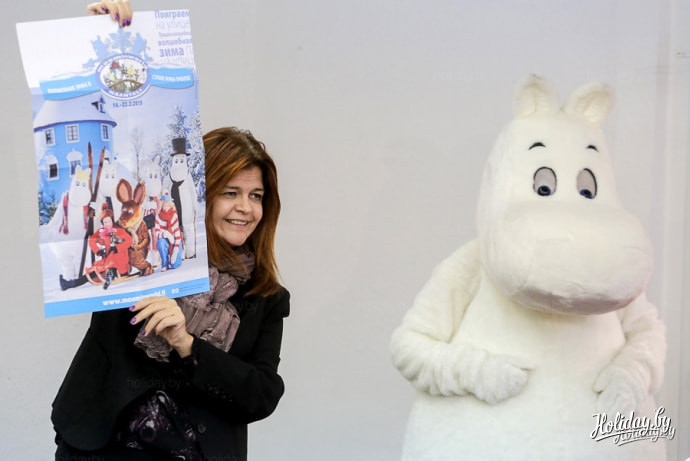 За десять минут до начала презентации тематического парка «Страна Муми-троллей» на первом этаже выставочного комплекса «Белэкспо» появились настоящий (живой!) Муми-тролль и бойкая малышка Мю. Они хохоча приглашали всех в конференц-зал на презентацию своего мира, обнимались и фотографировались со всеми желающими, признавались, что очень рады знакомству с белорусскими друзьями.