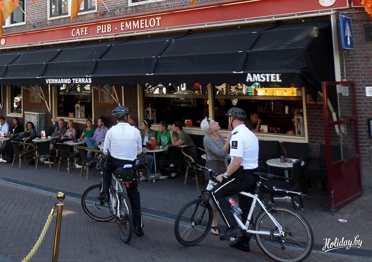 Полиция в Амстердаме выглядит очень дружелюбно, и часто передвигается на велосипедах или на лошадях