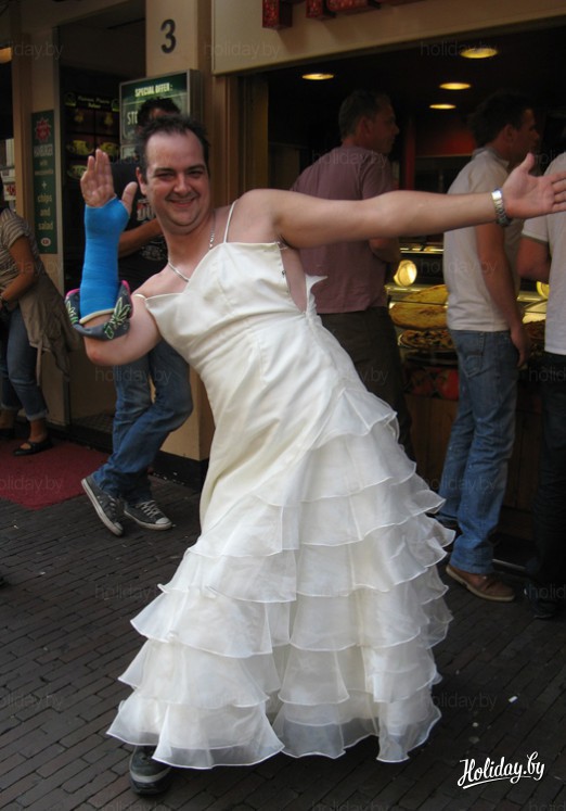 Понятно, что «не бывает дыма без огня» ― люди в «веселом» настроении в Амстердаме не редкость. Но, по моим наблюдениям, это чаще всего туристы, добравшиеся до кофешопов и решившие «взять от жизни все». Местные жители часто тоже веселятся так, что со стороны может показаться, будто здесь не обошлось без «допинга». Например, во время мальчишника жених наряжается в свадебное платье, его друзья тоже делают себе эпатажные look’и—и в таком виде они ходят по улицам, по барам, привлекают внимание прохожих. Но у них это легкое безумие и отсутствие комплексов присутствует всегда и дополнительные «катализаторы» им вряд ли нужны.