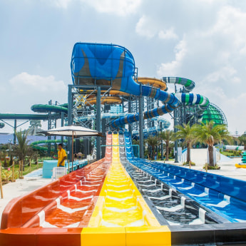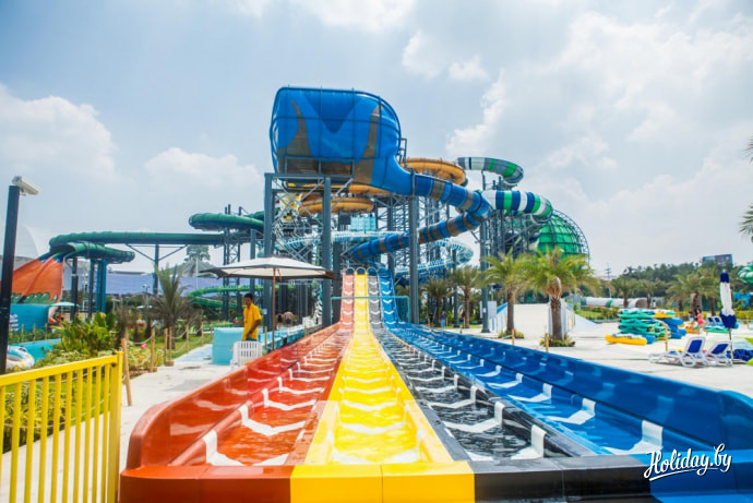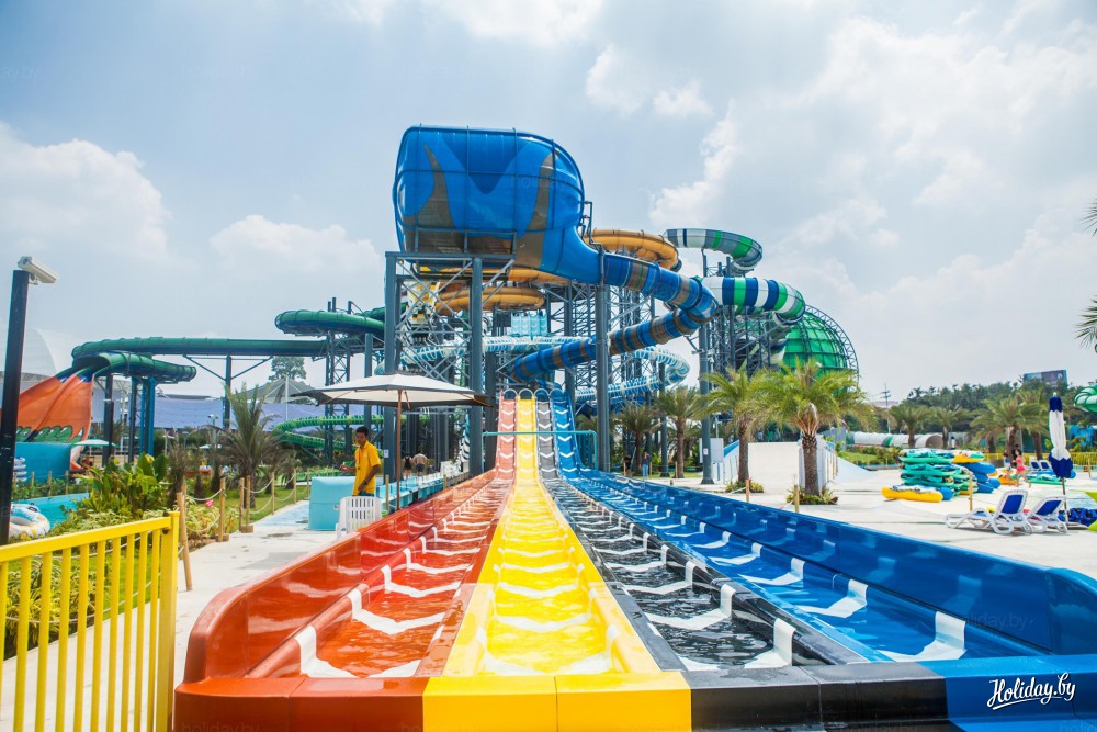 Развлечься в самом крупном аквапарке Азии можно будет всей семьей. К услугам гостей представят искусственный горный водопад высотой 31 метр. Кроме того, здесь можно будет найти зону джунглей, башню с 6 скоростными горками и крепость с 7 горками и большим ковшом.