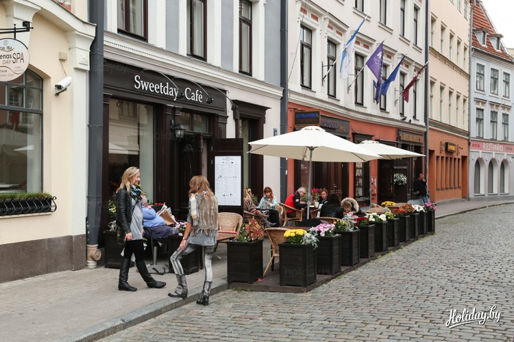 Таких мест в Риге, наверное, огромное количество. В старом городе (Вецрига) всё рассчитано на туристов – средний бюджет на хорошее второе блюдо примерно 20-25 евро. Безусловно, верхние границы не обозначены. Ценник ниже в Новом центре и за пределами туристических маршрутов. Во время последней поездки нам очень понравилось небольшое кафе Sweetday на улице Tirgonu, 9. Место отлично подойдет для завтрака или обеда и не очень укусит бюджет. Приятно побаловать себя большой тарелкой густого томатного супа с королевскими креветками всего за 13 евро. В кафе хороший выбор кофе и чая, а также десертов к горячим напиткам.