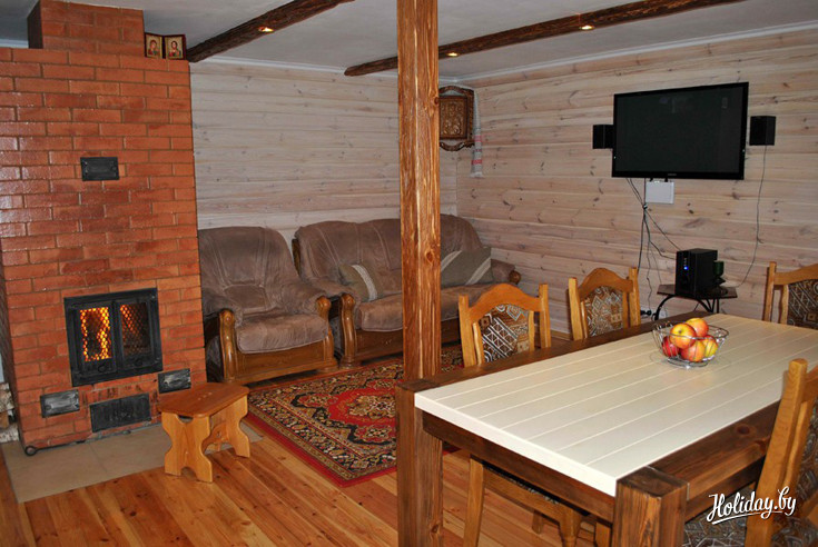 Аккуратный уютный дом с печью-камином готов принять до 10 человек в Новый год. Сюда хорошо ехать семьям с детьми, поскольку они вдоволь смогут побегать по обширной территории усадьбы, а также поиграть со взрослыми в зимний волейбол. Обязательно воспользуйтесь мангалом, ведь что может быть лучше ароматных шашлыков на зимней террасе дома? А самое главное — в агроусадьбе есть оздоровительная баня! Попариться здесь — сплошное удовольствие, поскольку в баньке есть бочка-купель, берёзовые веники и комната отдыха с камином. Баня оплачивается дополнительно.