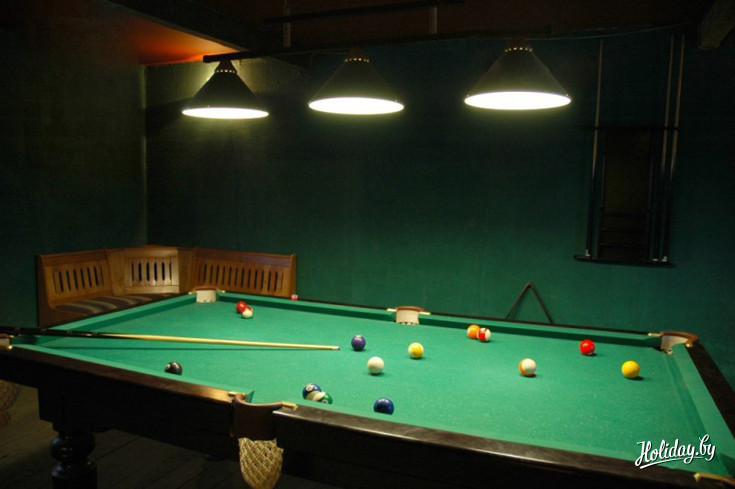 Этот дом отлично подходит для проведения шумных и весёлых торжеств. Здесь есть банкетный зал и большой танцпол с анимационной и музыкальной аппаратурой. Светомузыка, неоновый свет, дым-машина и «мыльные пузыри» — и вы почувствуете себя на самой зажигательной новогодней вечеринке! Особенно если дополнительно закажете на свою дискотеку диджея. На территории коттеджа есть прекрасная двухэтажная баня со спальней, комнатой отдыха и бильярдом. За отдельную плату возможна организация питания.