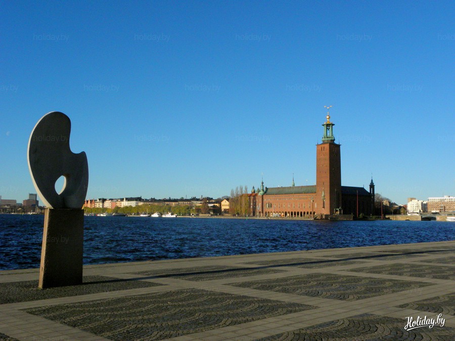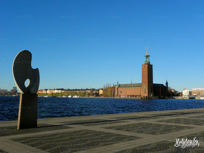 Вид с набережной на ратушу в Стокгольме, Швеция
