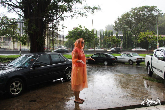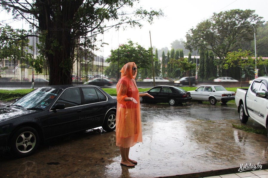 Экваторальный дождь в городе Кота-Кинабалу на острове Борнео, Малайзия
