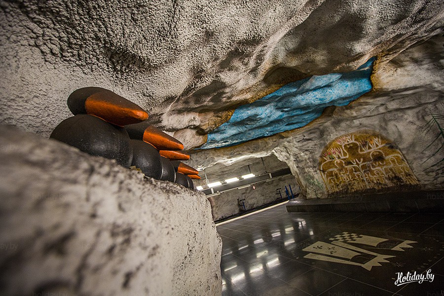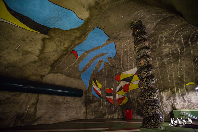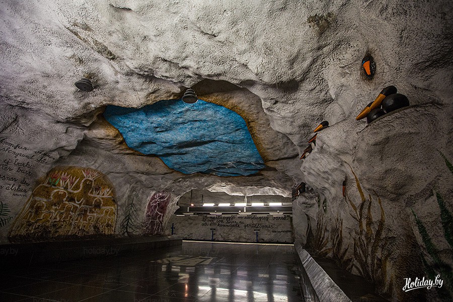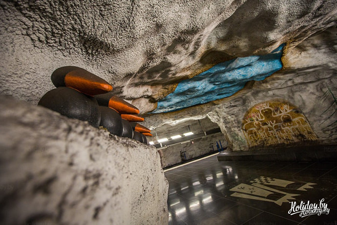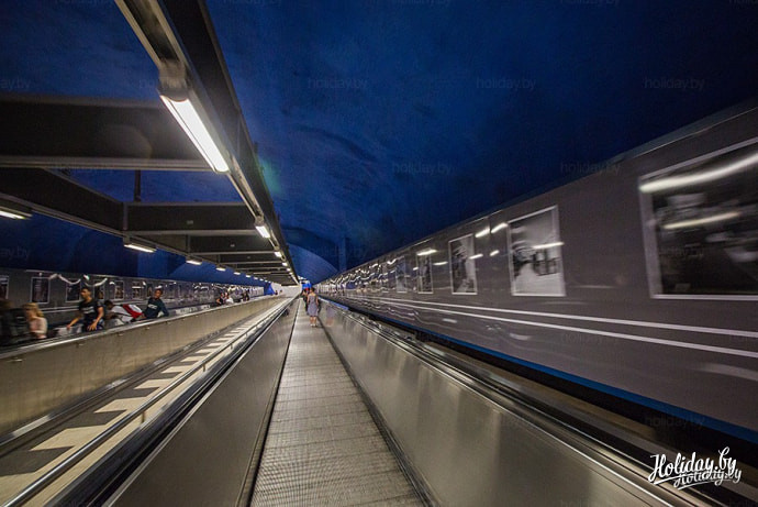 Чтобы проехать 10 станций, у нас ушло часа 3-4. Поезда ходят быстро, самое долгое время ожидания между составами — 7 минут, а в среднем следующий поезд приезжает через 1,5-2 минуты. К концу путешествия по шведскому подземелью мы очень замерзли, несмотря на то, что дело было летом. Большинство пещер находятся в среднем на глубине 30 метров, и температура там более чем освежающая.