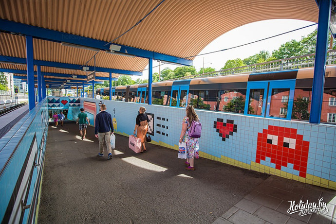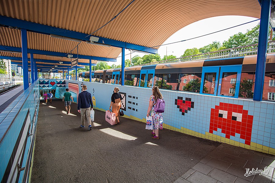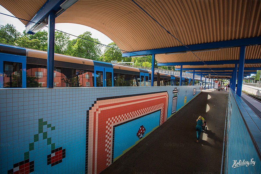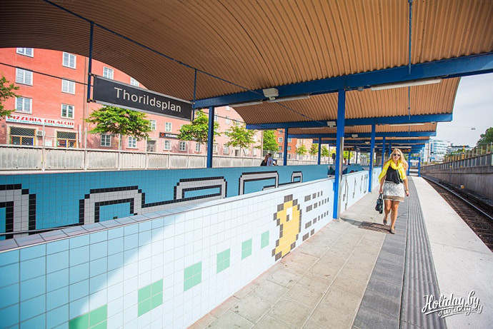 Thorildsplan. Наземная удивительно красивая и простая станция, в ней создается ощущение, что вы находитесь внутри игры Packman.