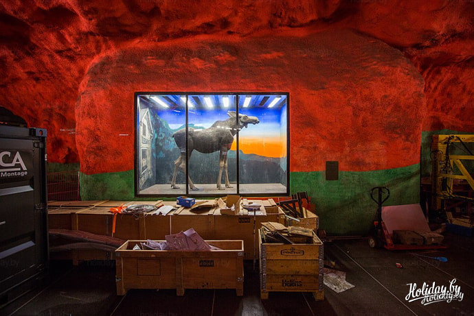 Solna centrum. Одна из самых красочных и контрастных станций. Красно-зелёная пещера символизирует актуальную проблему для Швеции 70-х — сокращение численности сельского населения и начало экологического движения. Единственная станция города, где можно встретить чучело лося.