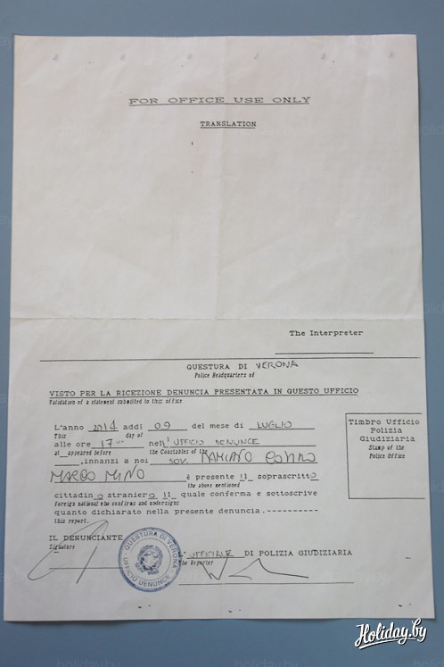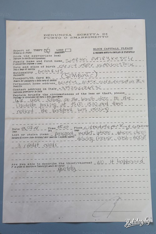 Уже по возвращении в Беларусь я с заявлением о краже обратился в РУВД, где мне сделали новый паспорт. А примерно через месяц-полтора после нашей поездки получил звонок из МИД Италии о том, что был найден мой старый документ.
