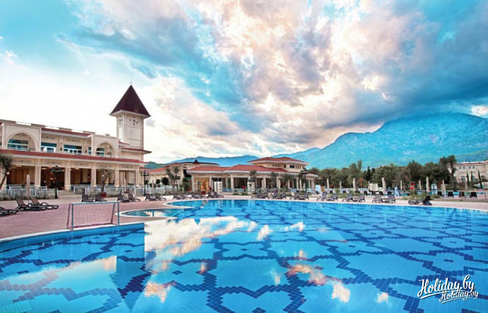 Отель располагается у подножия горы Тахталы в самом зеленом регионе Кемера — Текирова, и представляет собой комплекс двух-трехэтажных коттеджей. Каждый день с взрослыми и детьми работает профессиональная команда аниматоров. На территории отеля туристы смогут расслабиться в одном из шести бассейнов или в шикарном аквапарке (25 водных горок, из них 16 детских). Для любителей активного отдыха предоставляются два теннисных корта и водные виды спорта.