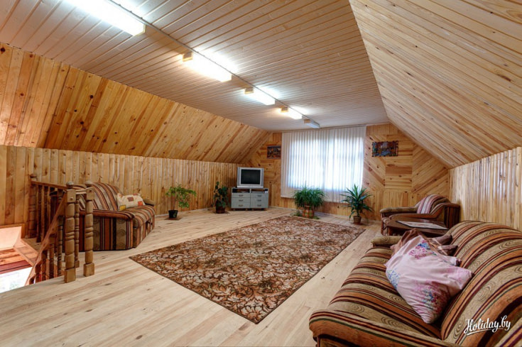 В двухэтажном коттедже есть четырехместные и шестиместные номера с душевыми и туалетными комнатами, кухней. В доме — всё, что позволит вам себя чувствовать комфортно: плазма, микроволновка, холодильник, электрочайник. Интерьер агроусадьбы выполнен преимущественно в классическом стиле, атмосфера — домашняя, располагающая к полному расслаблению. В отделке используются натуральные материалы: дерево, камень и т. д. И самое главное – здесь есть баня, это совершенно необходимая вещь, которая раскрасит вашу жизнь новыми красками, придаст энергии и преумножит силы!