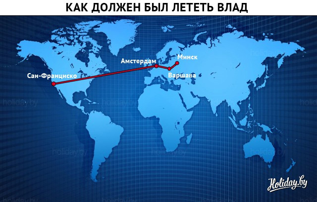 Третья, уже предновогодняя история рубрики «Трэш-тур» получилась развлекательно-познавательной. Можно и попереживать за нашего героя, и заодно вспомнить географию, потому что дорога в Беларусь из Соединённых Штатов Америки едва не заставила его помотаться по всему миру. К слову, Влада — так зовут нашего собеседника — это нисколько не испугало, и, несмотря на все перипетии, он сейчас учится в США. Влад рассказал нам свою волнующую историю.
