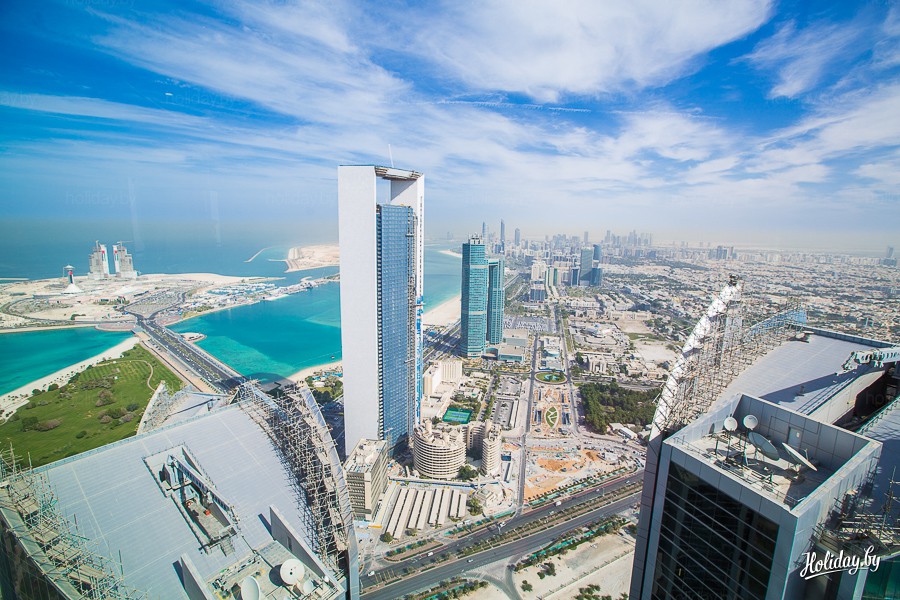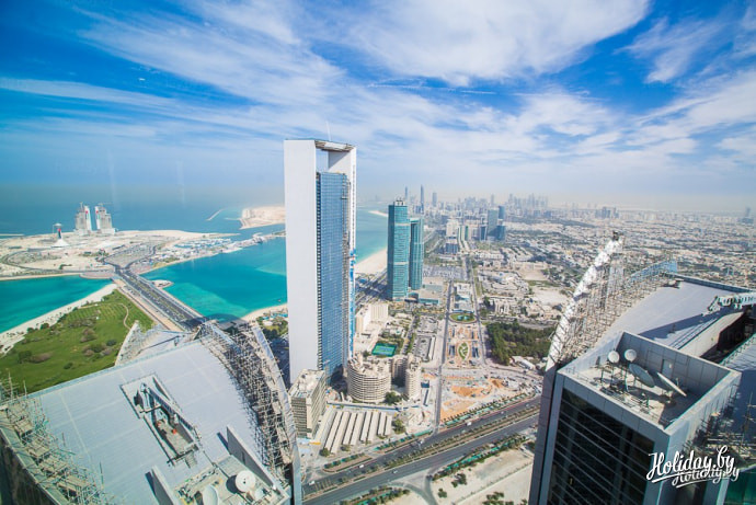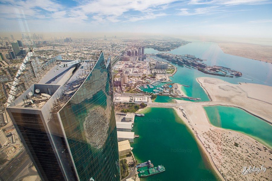Для того чтобы оценить размах отеля и осмотреть Абу-Даби с высоты птичьего полёта, советуем подняться на Etihad Tower. Обзорная площадка с панорамным видом на город расположена на высоте 300 метров. Во время подъема немного закладывает уши, но на 74 этаж мы приехали быстрее, чем минский лифт доставляет нас 10 этаж офиса Holidаy.by.
