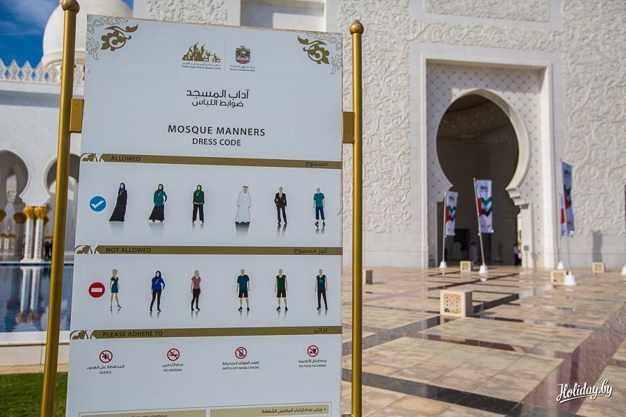 Если вы решите посетить мечеть, советуем внимательно отнестись к выбору одежды. Недопустимо посещать архитектурный памятник в шортах, майках и зауженных брюках. Если охранник на входе решит, что вы одеты неподобающе и не захочет вас пускать, не переживайте. В мечети в обмен на удостоверение личности женщинам выдают абаю (национальная одежда).