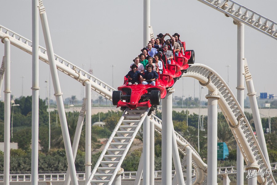 «В нашем парке находится самый быстрый аттракцион в мире. На Formula Rossa вы разгонитесь до 240 километров всего за пять секунд. Больше такого аттракциона нигде нет», — воодушевленно рассказывает пиар-специалист парка. Хорошо, что утром слабо позавтракали, подумали мы и отправились занимать очередь.