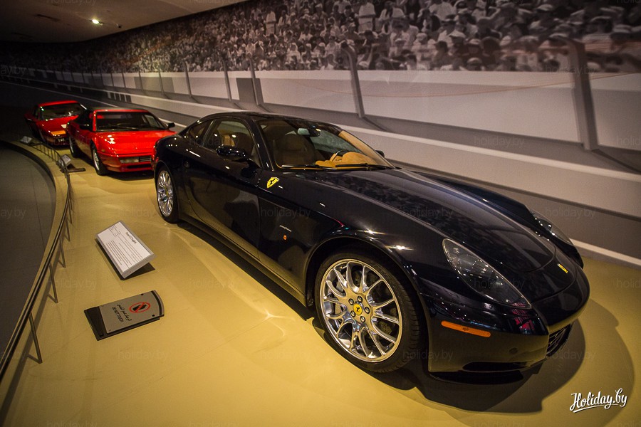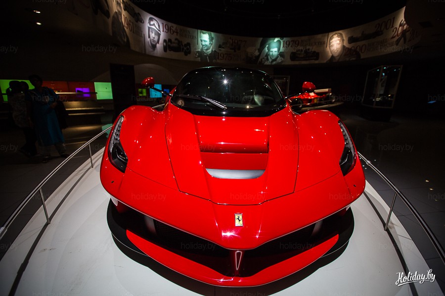 Получив полный букет ощущений на самом быстром аттракционе мира и заодно посадив голос, мы решили заглянуть в маленький рай фанатов автомобилей — музей Ferrari. Хорошо, что хотя бы здесь не было очереди.