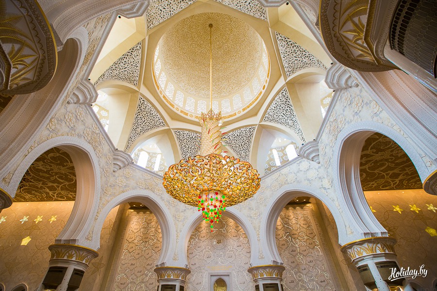 Великая мечеть — дважды рекордсмен книги рекордов Гиннеса. Во-первых, в ней находится самый большой в мире ковер площадью больше пяти тысяч квадратных метров и весом 47 тонн. Доставляли его в столицу на двух самолетах. Во-вторых, потолок мечети украшает самая большая люстра в мире. Диаметр выполненного из кристаллов Сваровски светильника общим весом 12 тонн достигает десяти метров, а высота — пятнадцати метров.