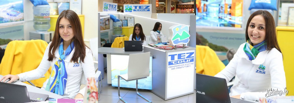 Компания Tez Tour сотрудничает только с авторитетными белорусским агентствами, поэтому турист всегда может быть уверен в том, что получит качественную консультацию и отличный отдых. Уполномоченные агентства компании есть как в Минске, так в Витебске, Бресте и Бобруйске.
