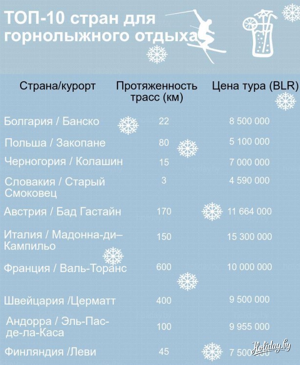Горнолыжный отдых становится все более популярным среди белорусов. Какой курорт выбрать в зависимости от сезона и куда стоит ехать семьям с детьми мы уже писали. Сегодня расскажем об особенностях трасс на курортах и стоимости туров для белорусов.