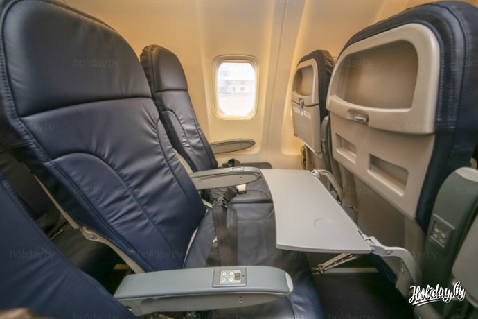 Чтобы понять, насколько комфортный салон у нового самолета «Белавиа», мы зашли внутрь. Boeing-737-800 может похвастаться вместительными и закругленными багажными полкам и мягкими сидениями.