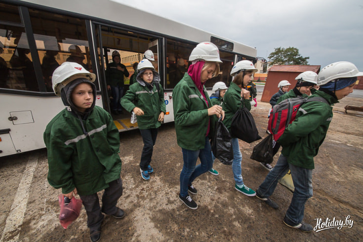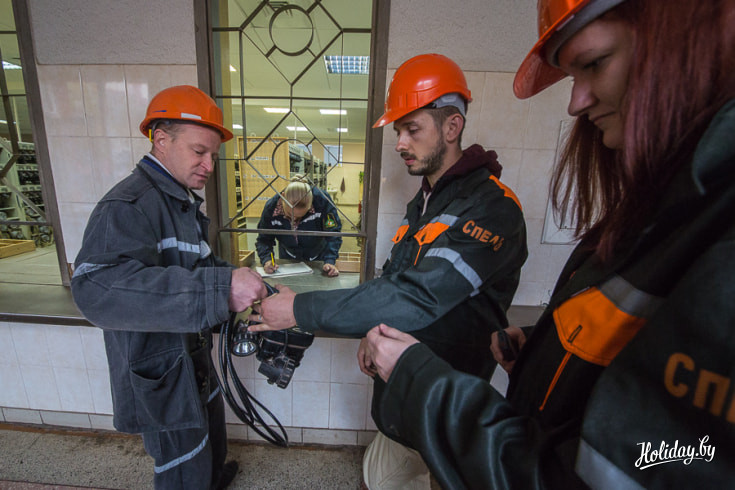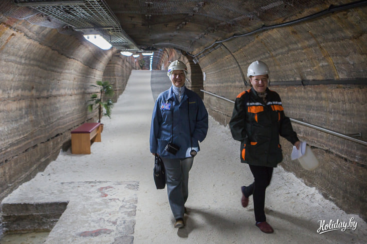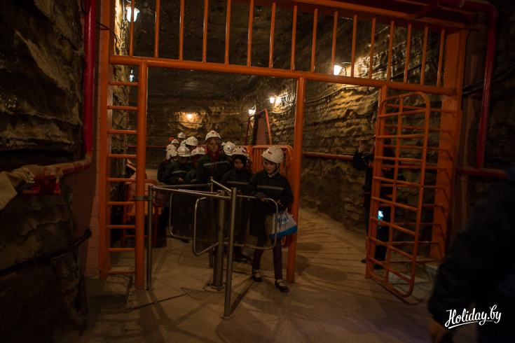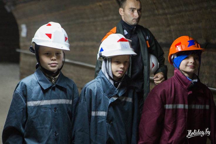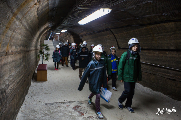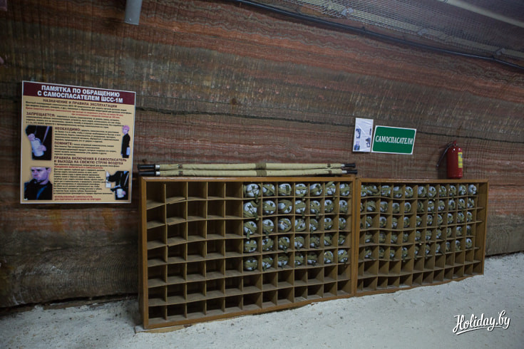 Вход в подземный корпус спелеолечебницы расположен на территории «Беларуськалия», под землю детей и взрослых пускают только в каске и спецодежде. Всю серьезность предприятия мы осознали, когда у входа к нам подошел мужчина и произнёс: «Всегда следовать за мной, никуда не отходить, фонарик не отключать» и отправил получать самоспасатели. Самоспасатель состоял из фонарика и сумки с противогазом, весит эта экипировка килограмма три, но техника безопасности превыше всего.