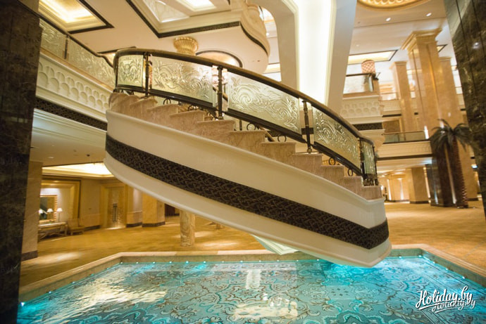 При всей дороговизне и помпезности отель Emirates Palace открыт для туристов, его может посетить любой желающий. Помимо кофе с золотом, здесь предлагают отведать национальную эмиратскую кухню в ресторане Mezlai.