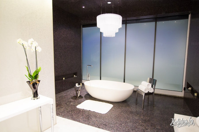 Самый роскошный номер отеля — двухэтажный президентский сьют размером 400 квадратных метров. На втором этаже терраса с открытым персональным бассейном (длина – 10 м), спальня с кроватью king-size, гардеробная, ванная комната c сауной и парной. Номер соединен с приватным SPA-салоном (процедурный кабинет, тренажеры, парная).