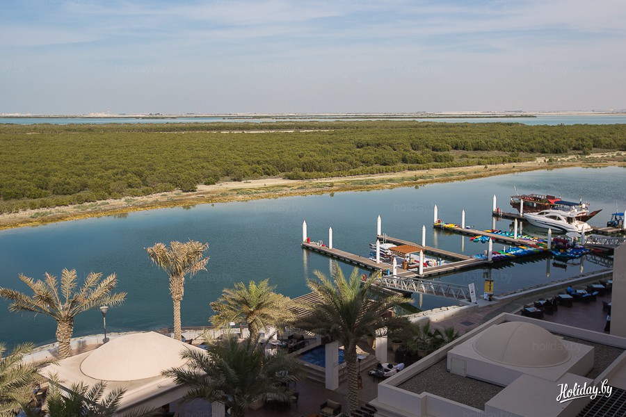 В Абу-Даби напротив многих отелей, имеющих собственные пляжи, расположен остров. Из-за этого складывается впечатление, что гостиница расположена на берегу реки. Море, простирающееся до горизонта можно увидеть на острове Саадият, хорошие виды открываются и с острова Яс.