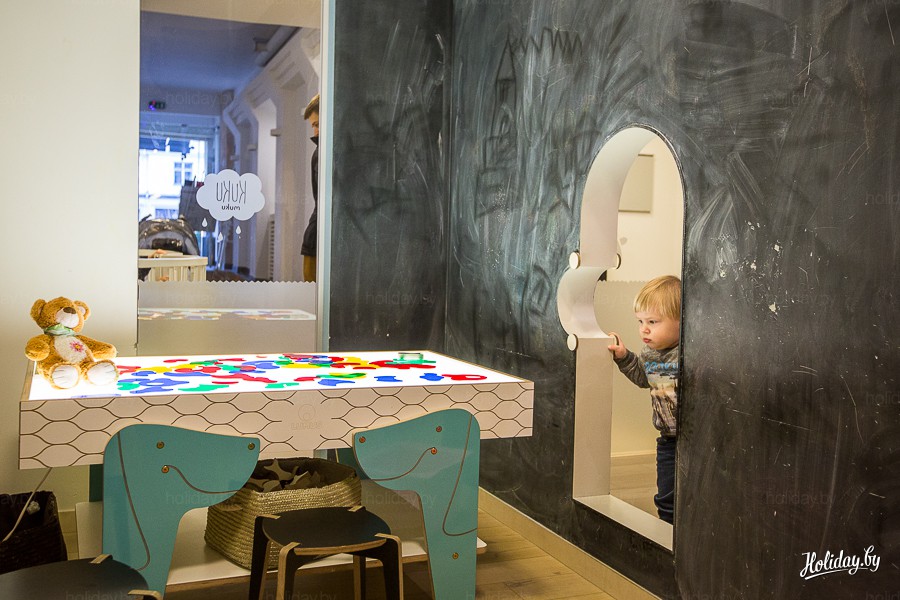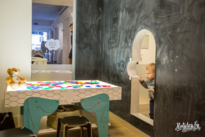 Kukumuku — просторный ресторан для отдыха с маленькими детьми. На входе ресторана стоят две большие корзины с бахилами, без них в Kukumuku не пустят. В помещении стараются поддерживать максимально стерильные условия, бахилы носят даже сотрудники заведения.