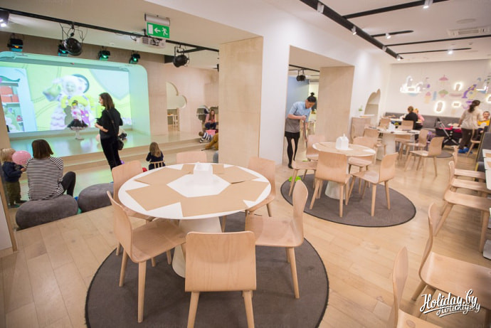В кафе регулярно проводятся выступления артистов, расписание которых размещено на официальном сайте. Также здесь есть отдельная комната с игрушками, книгами и мелками. Стены детской комнаты приспособлены для рисования.
