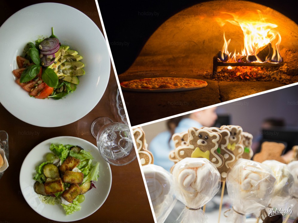 Наблюдать за процессом изготовления вашего заказа можно из зала, главное сесть лицом к кухне. Пицца здесь готовится по классической итальянской технологии — в печи разогретой до температуры 400-450 градусов. Повар, смахивающий на итальянца, рассказал, что пицца доходит до готовности всего за две минуты. Также он посоветовал утром зайти на запеканку из баклажанов, которую также готовят в печи.